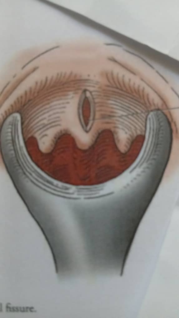 خراشیدگی سطحی در سطح مخاط مخرج است و چون ممکن است توسط چین های مخرج پوشانده بشود گاه به سختی قابل رویت است.